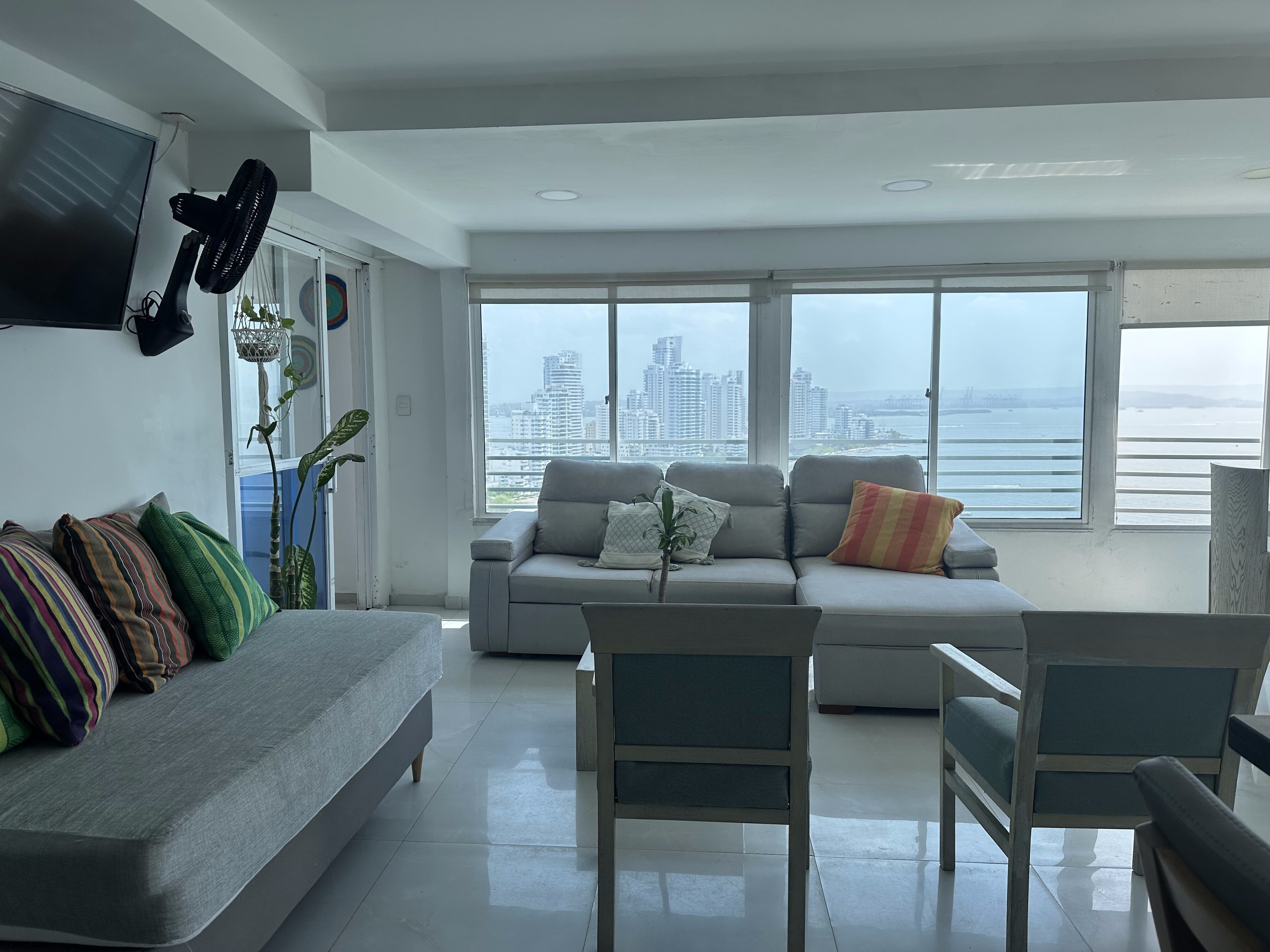 Wake up to the Caribbean horizon from your private terrace. Zafiro is a spacious upper-floor penthouse with panoramic views of Cartagena Bay, 4 beautifully appointed bedrooms, a fully equipped kitchen, and living areas bathed in natural light. The terrace alone will take your breath away — perfect for sunset cocktails or morning coffee as the city wakes up below.